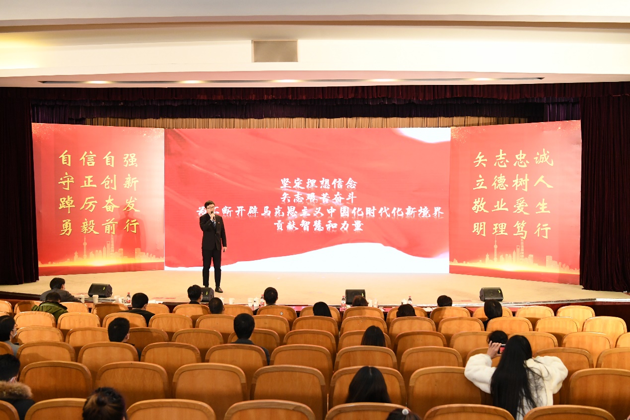 (纺织学院辅导员马也围绕“开辟马克思主义中国化时代化新境界”作宣讲)