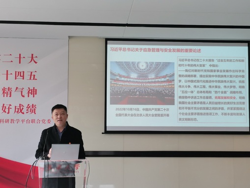 陈革以“防风险 除隐患 保平安”为题,带领大家共同学习了党的二十大报告中关于应急管理和安全发展的重要论述。他强调,党中央、国务院一贯高度重视校园安全工作,习近平总书记等中央领导同志先后作出一系列重要指示批示,高校实验室安全是高校校园安全的重要组成部分,大家要坚持“安全第一、预防为主”,全面贯彻落实党的二十大精神,立足本职工作,持续做好实验室安全管理工作。结合学校实验室安全管理工作现状,他从安全责任体系、安全准入机制、安全教育培训、隐患排查治理、安全奖惩机制、应急能力建设等方面,介绍了具体落实举措和下一步推进路径,希望大家以实际行动为学校事业高质量发展筑牢安全“防火墙”。