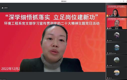 “深学细悟抓落实,立足岗位建新功”环境学院环境工程系党支部举行学习宣传贯彻二十大精神主题党日活动