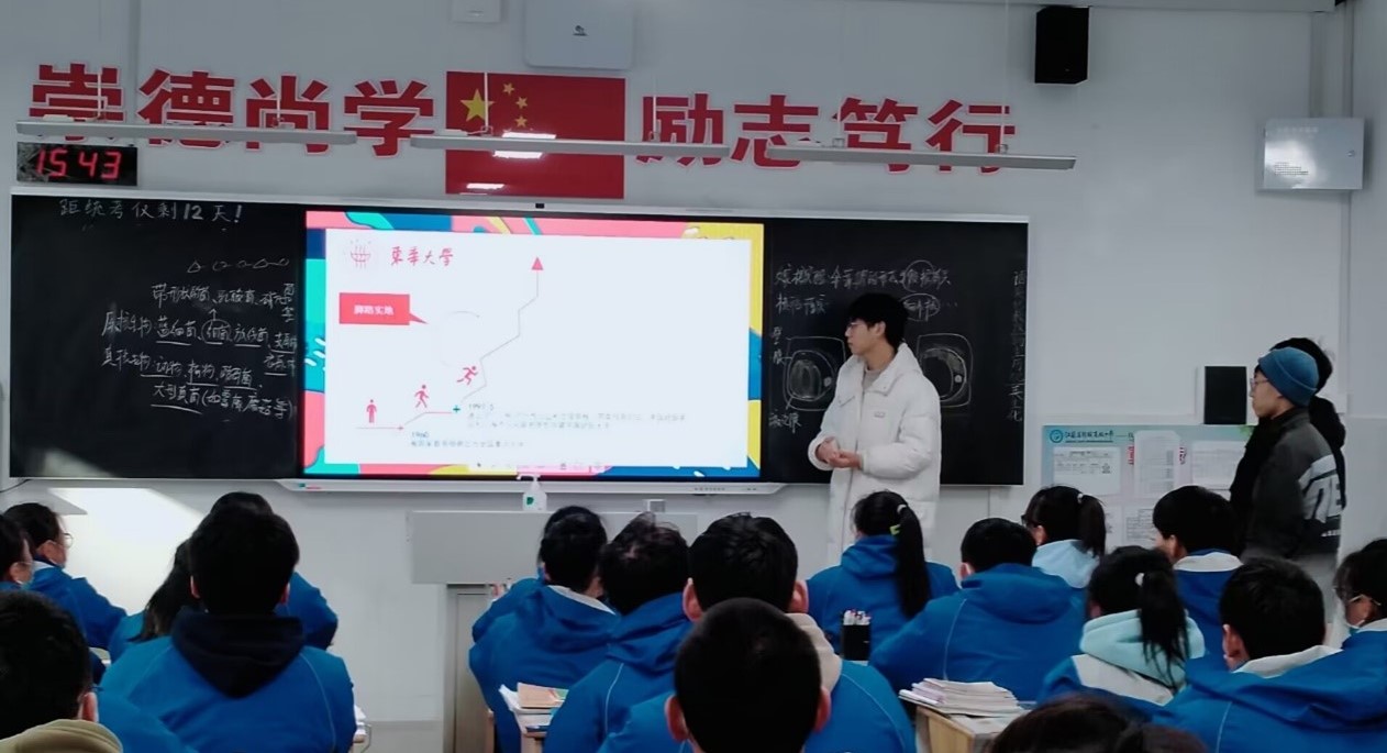 旧地重游,脑海中骤然浮现的是奋笔疾书的日日夜夜,“校园大使”用自己的成长故事,搭建起东华与生源地高中的纽带。陈颖、谢彦梓和章雨轩前往浙江省瑞安市上海新纪元高级中学,介绍了我校办学特色、培养模式,分享了自己的大学生活、高考填报志愿心得体会等。江苏省赣榆高级中学小分队则以视频形式介绍,并声情并茂地与学弟学妹分享充实多彩的大学学习生活经历。线上宣讲也如火如荼,河南省虞城县高级中学小分队通过“云宣讲”,绘声绘色地讲解了东华的优势与竞争力。“校园大使”耐心解答学弟学妹的疑惑,缓解他们的学习压力,为他们鼓劲加油。
