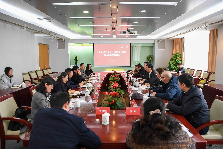 崔运花在主持会议时指出,“大思政课”是新时代高校思政课质量提升的战略选择和有效路径,要进一步提高思想认识,心怀“国之大者”,深刻认识“大思政课”建设的重要意义,坚持用习近平新时代中国特色社会主义思想启智润心、铸魂育人,增强用党的创新理论武装头脑的思想自觉和行动自觉,教育引导学生更加坚定“四个自信”。要进一步加强协同联动,坚持开门办思政课,牢固树立“一盘棋”意识,围绕“大思政课”课程体系和教学改革等重点任务,加强校内与校外、部门与学院等各单位间的协同,形成更大的育人合力,增强“大思政课”的建设实效。要进一步强化成果辐射,以上海市“大思政课”建设重点试验高校为引领,服务于各学段学生的全面成长,服务上海区域教育改革发展,推动学校思政工作改革创新,加强经验总结,发挥辐射带动效应,着力打造“大思政课”建设品牌。