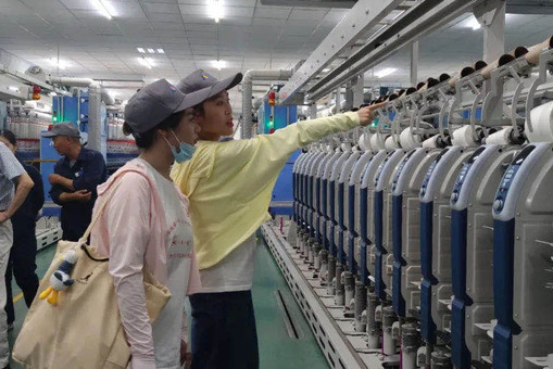 (“一带一路”全国大学生纺织援疆团调研纺织企业生产车间)
