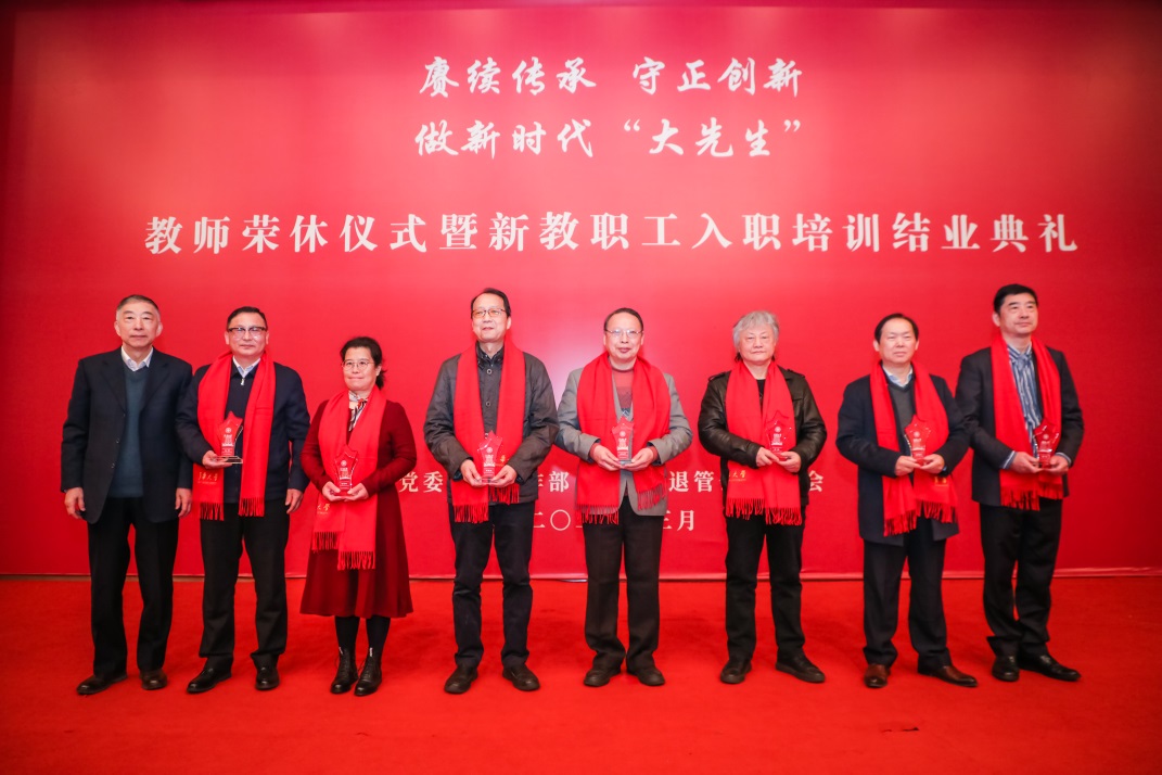 刘承功代表学校向荣休教师致以感谢,向新教职工表达期许。他指出,做“经师”和“人师”相统一的“大先生”,是党和人民对教师的深切嘱托,是人民教师的光荣使命。学校将老教师荣休仪式与新教师结业典礼一并举行,新老教师同上“毕业大课”已成为优良传统。荣休教师长久以来为学校建设发展付出艰辛努力,学校要用心用情用力做好退休工作,加强对老同志生活上的照顾、精神上的关怀。他希望,退休教职工继续为学校加快推进“双一流”建设、实现高水平研究型大学奋斗目标献智献策,在人才培养、学科建设、学术研究、队伍建设等各方面发光发热;新进教师要奋力在不同岗位创造出色的工作业绩,在建设教育强国、科技强国、人才强国的宏大事业中实现人生价值,作出应有贡献。