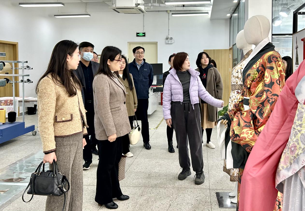 调研组一行走访了团委、上海国际时尚科创中心、服装与艺术设计学院长三角乡村振兴设计工作室等,深入了解学校办学特色及校园文化,并实地参观服装与艺术设计学院2023届研究生毕设展。