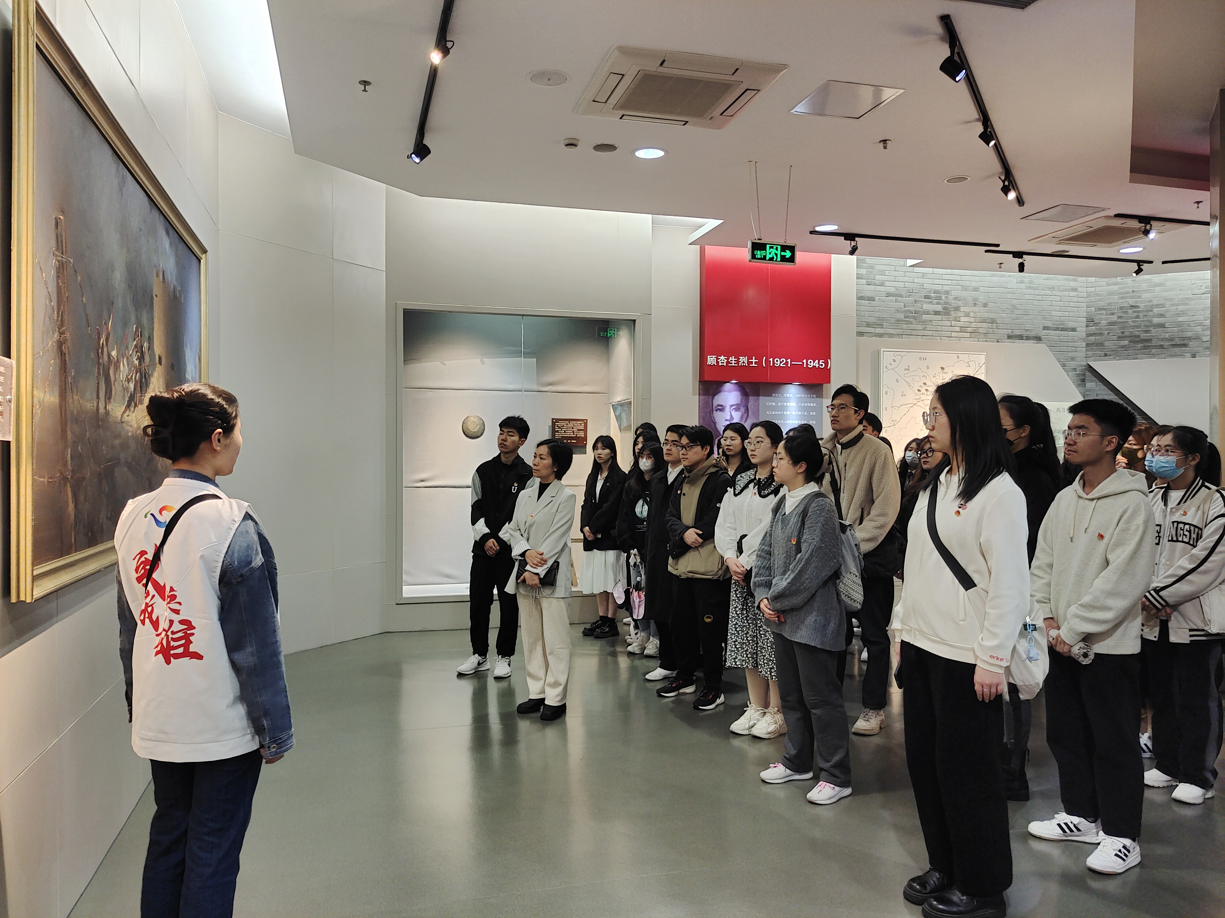 松江烈士陵园共有纪念馆、墓区、碑林区、纪念广场等几大功能区,旨在纪念在战争中牺牲的烈士、介绍各时期具有代表性的烈士事迹。祭扫仪式结束后,一行人前往烈士碑林区、墓区进行瞻仰。黑色的花岗岩镌刻着家书、诗文,高低错落,辉煌无声,流露着的是英雄们向死而生的英勇、傲然不屈的顽强。瞻仰结束后,全体成员前往松江英烈纪念馆,共同学习22位烈士们抛洒热血、捍卫祖国山河的壮举。在场馆里,一行人驻足观看了松江英烈教育片《永不凋谢的芳华》,战士们在战火纷飞的岁月,无所畏惧,为了革命事业、社会主义事业毅然赴死、虽死不悔。影片像一把打开记忆枷锁的钥匙,将尘封已久的往事慢慢揭开,故事里的每一位英雄,每一份英烈事迹都令人动容。