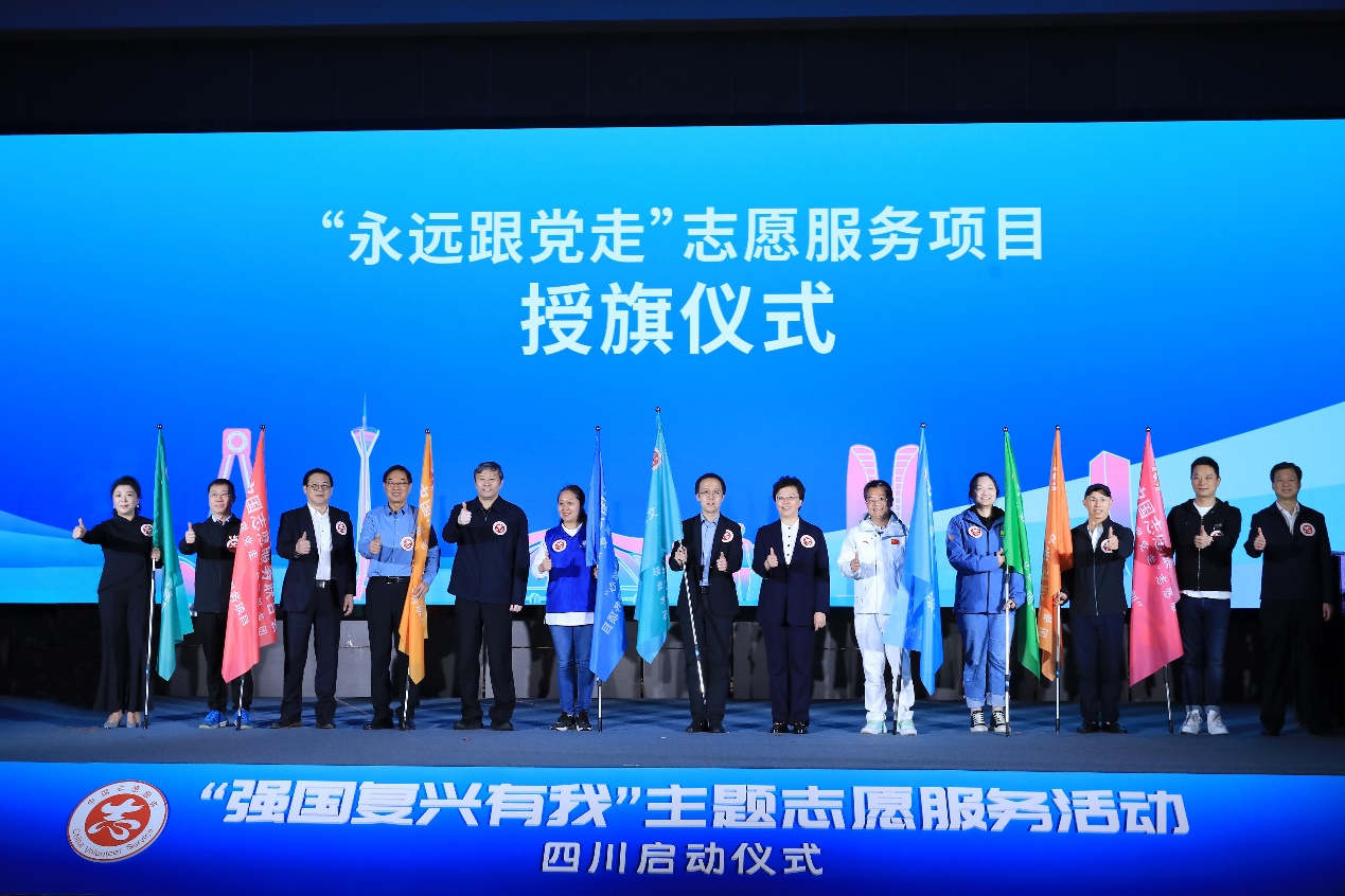 4月14日,“强国复兴有我”主题志愿服务活动四川启动仪式在成都举行。中国志愿服务联合会常务副会长孙志军,四川省委常委、宣传部部长郑莉出席并向“强国复兴有我·永远跟党走”志愿服务团授旗。志愿服务团队代表,爱心企业代表,学雷锋志愿服务“四个100”先进典型代表到场参加启动仪式。我校服装与艺术设计学院副院长于晓坤和刘慧教授带领文化遗产创新实践志愿服务队受邀参加此次志愿服务,刘慧作为志愿者代表在启动仪式上发言。