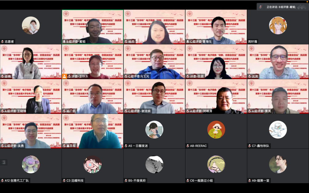4月15日上午,第十三届“东华杯”电子商务“创新、创意及创业”挑战赛暨全国大学生电子商务“创新、创意及创业”挑战赛校内选拔赛采用线上会议的形式开展,参赛学生团队和评委老师共同参加。管理学院副院长杨帅教授致开幕欢迎词并宣读比赛评分标准,大赛由管理学院教师戴韬主持。