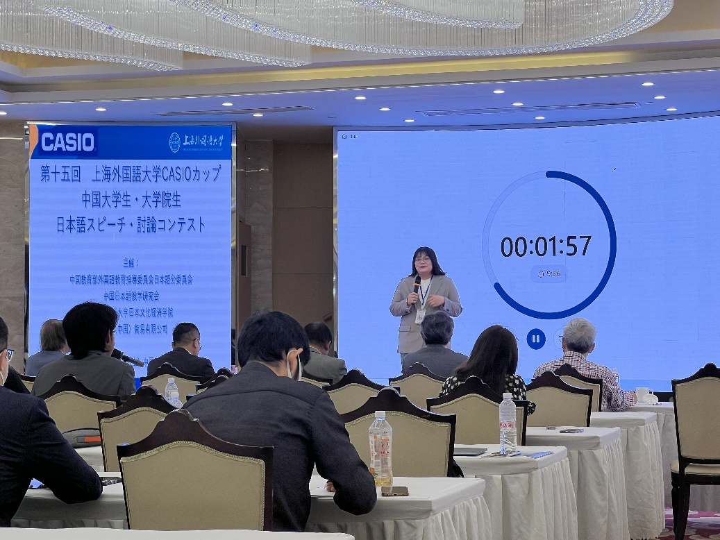 5月20日,第十五届“卡西欧杯”中国日语专业本科生·研究生演讲辩论大赛(以下简称为“大赛”)全国总决赛落下帷幕,我校外语学院日语笔译专业2022级硕士研究生王越昕,凭借扎实的日语基本功和思辨能力,获得评委会高度评价,斩获全国一等奖。外语学院日语系副主任劳轶琛老师获评优秀指导教师。