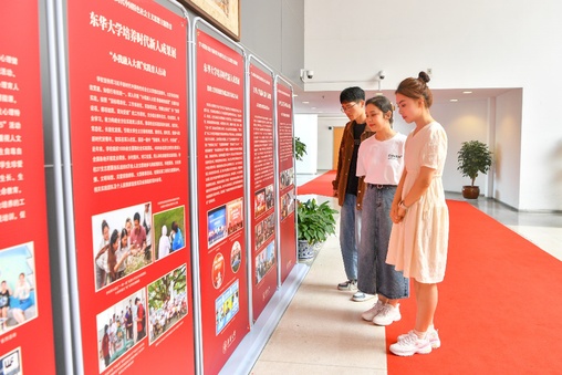 培养时代新人成果展和“学习二十大 创文明校园”文明实践主题活动十佳案例在图文信息中心同步展出。