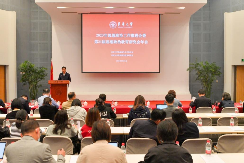 5月22日,学校党委在松江校区召开2023年思想政治工作推进会暨第31届思想政治教育研究会年会。党委书记刘承功,校长俞建勇,党委副书记崔运花,党委副书记、纪委书记王云骏,党委副书记项延训,副校长陈革、李炜、赵震,党委常委朱英、任晓杰出席会议。会议由崔运花主持。