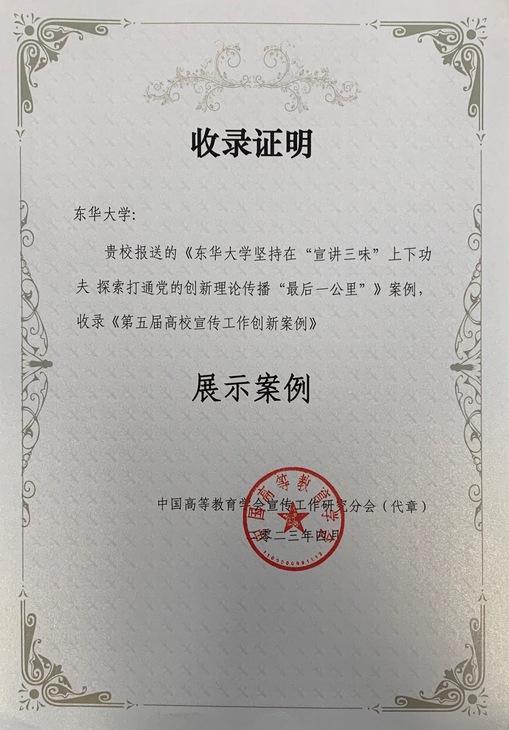 近日,从中国高等教育学会宣传分会第二次会员代表大会暨2023理事年会论坛传来喜讯,我校党委宣传部报送的理论宣讲工作案例《坚持在“宣讲三味”上下功夫 探索打通党的创新理论传播“最后一公里”》入选第五届高校宣传工作创新案例(展示案例)。