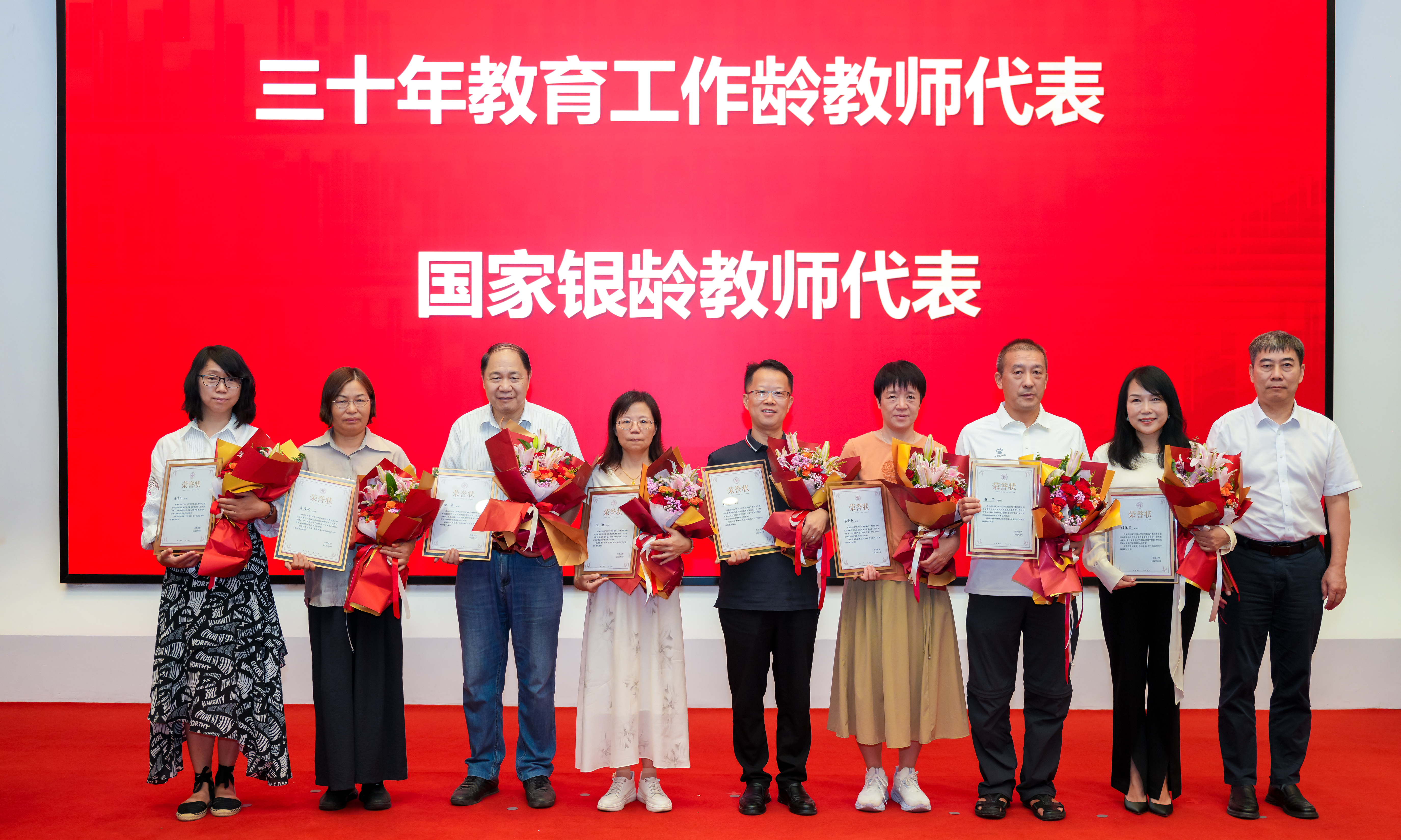李成龙、耿绍宁、刘淑慧、陈革、阎林平、陆卫兵、张清华为本年度党建思政、教育教学、人才科研等荣誉获奖代表以及三十年教育工作龄、国家银龄教师代表颁发荣誉状。