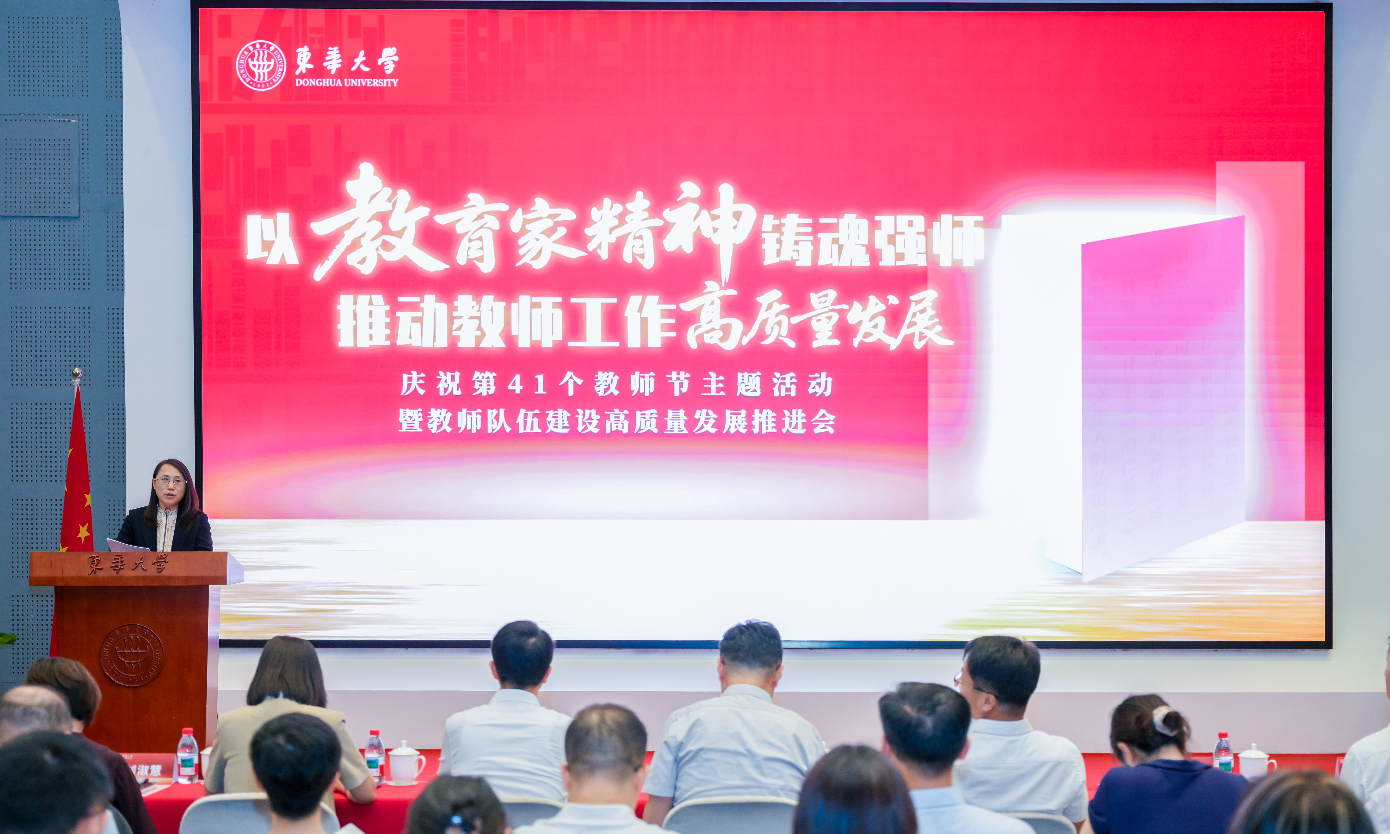 9月9日,学校召开庆祝第41个教师节主题活动暨教师队伍建设高质量发展推进会。党委书记刘承功,校长项延训,党委副书记李成龙、耿绍宁、王治东,副校长刘淑慧、陈革、阎林平、陆卫兵、张清华,党委常委朱英出席,活动由王治东主持。学校教师工作委员会、师德师风建设委员会委员,各职能部门负责人,二级单位党政负责人、教师工作小组成员、师生代表等与会。