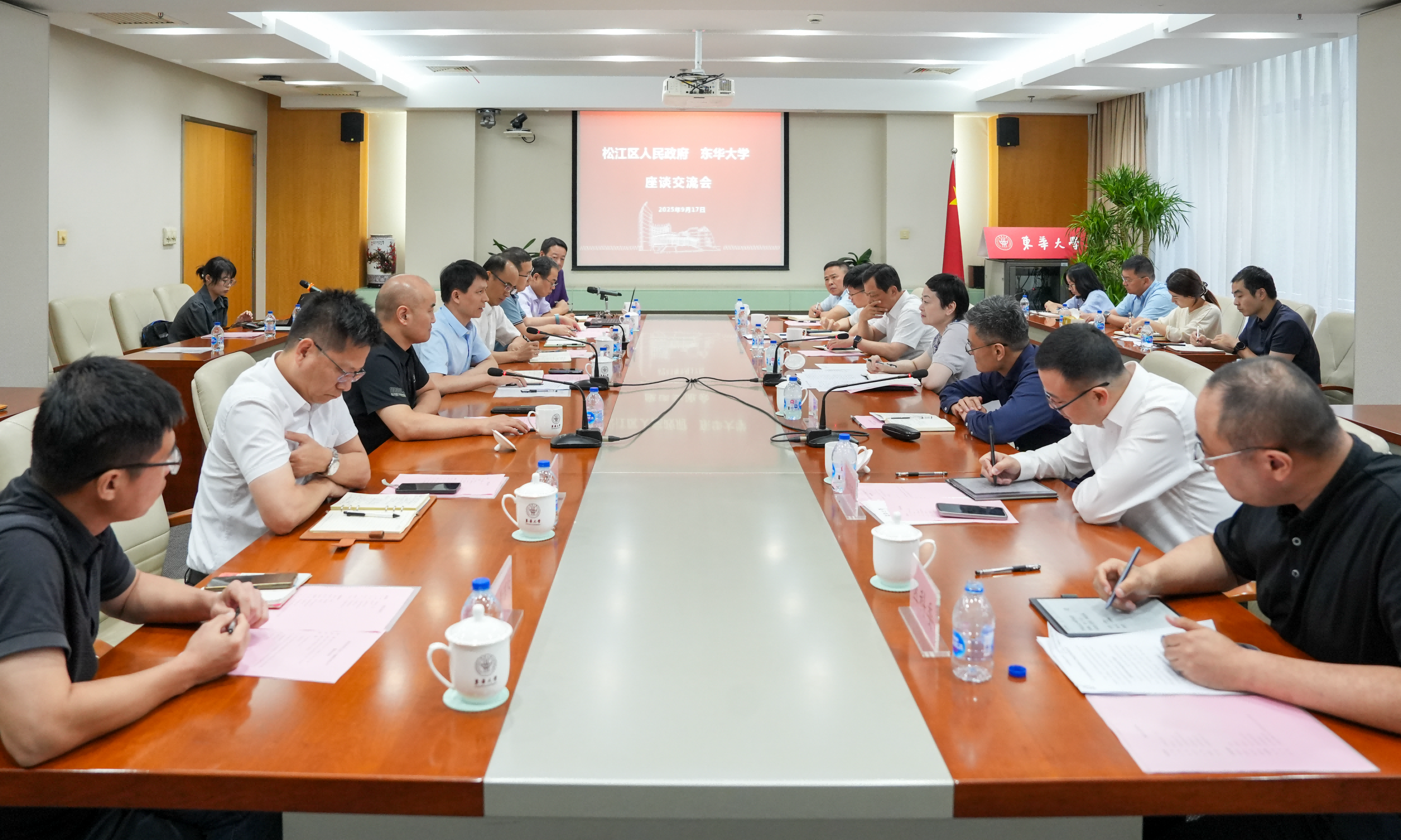 会上,科研院院长沈波介绍与松江区科研合作情况。上海东华镜月资产经营有限公司总经理李俊介绍国家大学科技园建设情况。与会人员就进一步深化校地合作进行深入交流。