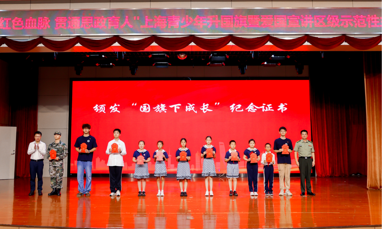 9月18日,为纪念抗战胜利80周年,厚植青少年家国情怀,校团委联合团松江区委举办“赓续红色血脉,贯通思政育人”上海青少年升国旗暨爱国宣讲区级示范性主题活动。团上海市委挂职副书记唐志宇出席并致辞,校党委副书记李成龙,松江区委常委、人武部部长周晓光出席并为大中小学生代表颁发“国旗下成长”纪念证书。松江区教育局、团松江区委、校党委宣传部、校团委、东华附高、东华附校有关负责同志及600余名师生代表、退役大学生士兵、老兵代表参加活动。