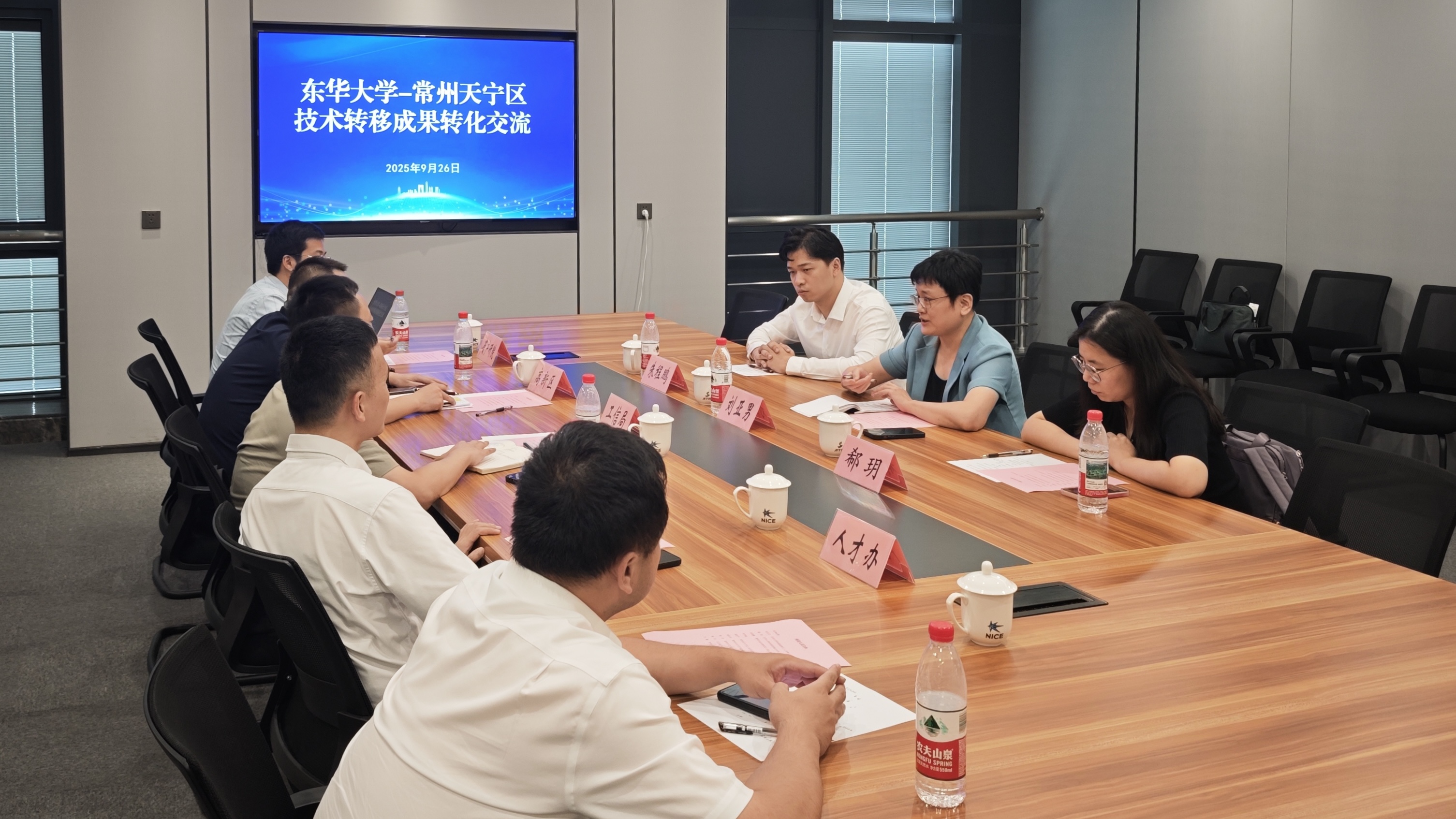 会后,科研院产学研合作处处长刘亚男一行赴江苏省产业研究院调研,就科技成果转化、产业协同创新等领域与常州天宁区召开技术转移座谈交流,天宁区工信局党组书记周忠平、郑陆镇副镇长、人才办负责同志,以及江苏省产业研究院常州服务中心负责人共同参会。