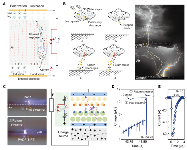 图1模仿闪电回击的等离子体记忆效应实现稳定、可控的静电击穿